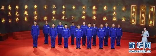 在主持人的引导下,中船重工第七六〇研究所抗灾抢险英雄群体中的14位同志(另外3位同志牺牲)参加发布仪式