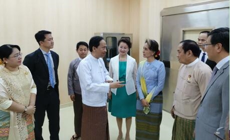 仪式上,昂山素季对国药国际和缅中交流合作协会在医院升级改造过程中的辛勤付出以及一直以来为缅甸卫生领域做出的贡献给予肯定并表示感谢。她表示,那茂人民医院作为第二所中缅友好医院,将持续见证中缅胞波情谊、惠及更多当地百姓。