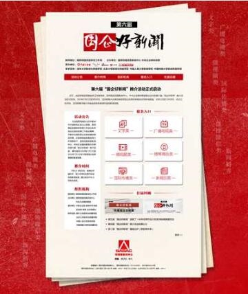 本届“国企好新闻”推介活动将集中推介2018年7月1日至2019年7月1日期间发表的涉及国资国企改革发展的优秀新闻作品,评选出十大新闻创客。其中,文字类新闻作品将设一等奖3个,二等奖6个,三等奖9个;广播电视类、“三微”类、国际传播类新闻作品将分设一等奖1个,二等奖2个,三等奖5个,并设立特别奖若干。在经国家正式批准的报纸、刊物、广播电台、电视台;经国务院新闻办公室批准的、具有登载新闻业务资质的新闻网站;经国有企业官方认证的新媒体账号;以外语撰写在我国外宣媒体或对象国媒体发表的原创新闻作品均可参与相关推介。