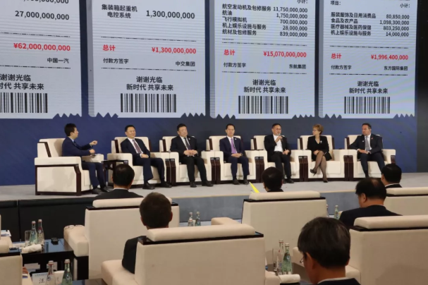 今天上午,国资委组织东航集团、中国一汽、兵器装备集团、通用技术集团等15组中外企业签署合同或协议。