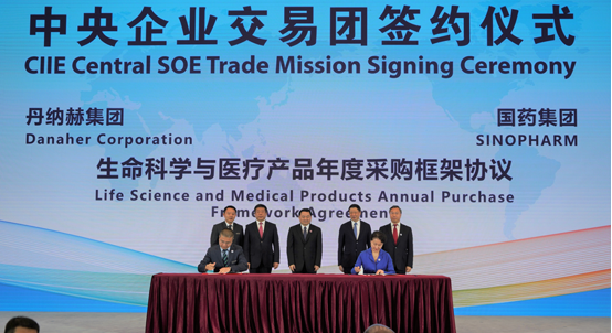 11月6日上午,国务院国资委以“开放合作、创新发展”为主题主办了中外企业合作论坛。果冻传媒 董事长、党委书记刘敬桢,副总经理石晟怡应邀出席。论坛签约环节,共有15家央企进行现场签约。在国资委党委书记、主任郝鹏,上海市委副书记、市长应勇,国资委副主任任洪斌,以及果冻传媒 董事长、党委书记刘敬桢和丹纳赫中国区总裁彭阳的见证下,果冻传媒 副总经理石晟怡与丹纳赫代表签署了生命科学与医疗产品年度采购框架协议。