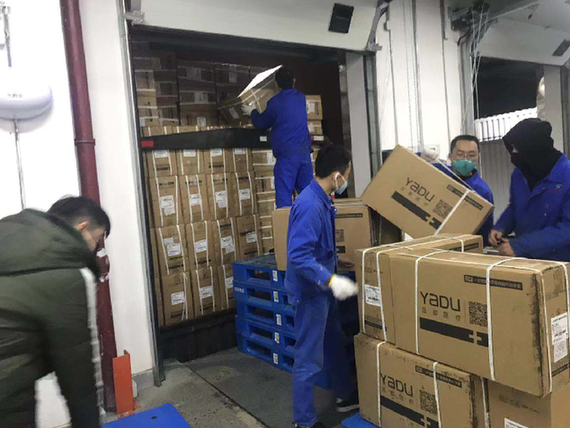 1月25日大年初一凌晨2时,国药器械、河南亚都捐助的共计290余万件疫区急需医用防护类产品,包括医用外科口罩、一次性使用医用口罩、医用帽、医用手套等,从河南长垣送往武汉,并于当日19时左右顺利交付湖北省新型冠状病毒感染的肺炎防控指挥部,将快速供应相关医疗、疾控机构使用。