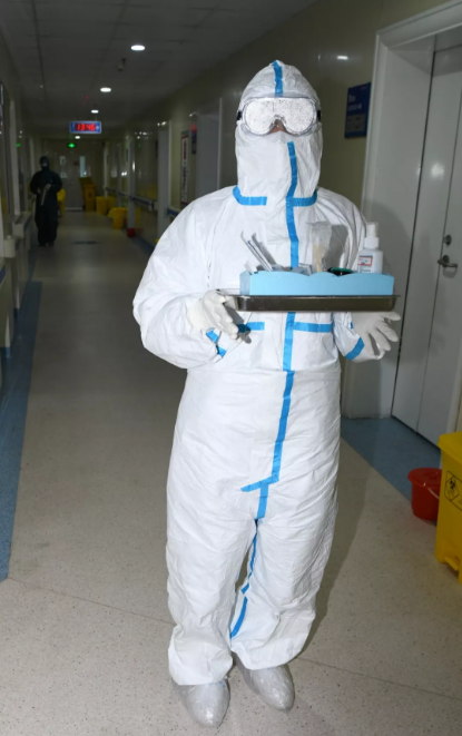 1月22日,发热门诊值守了一夜,刚交班就赶到隔离病房,继续战斗。