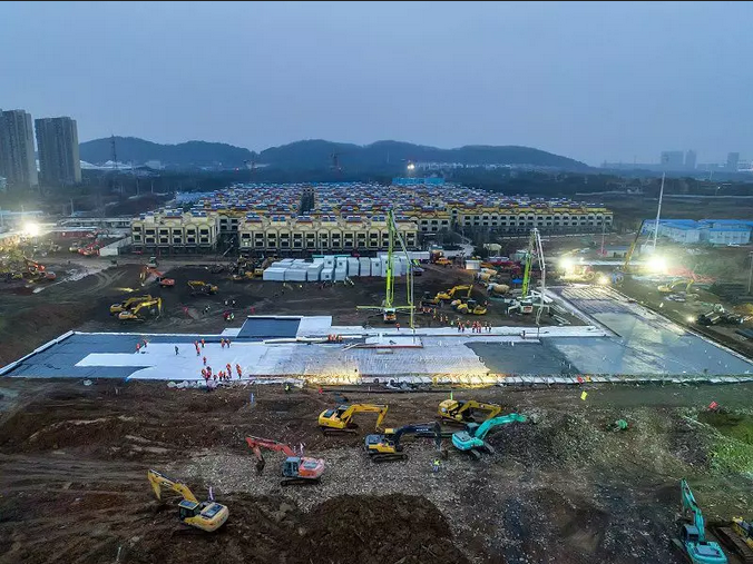 1月25日,由中国建筑中建三局牵头实施的武汉火神山医院正式开工,医院总建筑面积3.39万平方米。截至1月28日12时,第一栋箱式板房开始搭设,地下管网铺设同步全面展开,现场进度正在快速推进,火神山医院效果图正式发布。1月25日下午,由中建三局承建的武汉雷神山医院进场准备,建筑面积约3万平方米初定新增床位超过1300张。截至1月28日12时,医疗隔离区管线沟槽开挖、贝雷梁安装全部完成,医护人员住宿区开始搭设板房。截至1月28日,中国诚通所属物流企业为武汉雷神山医院运送钢材611吨;在此过程中,国家电网做好电力设施配套。招商局中国外运紧急协调车辆资源,满足火神山医院承建方的卡车用车需求,并将2000箱食品救援物资发运至火神山医院;中国电信、中国移动、中国联通、中国信科、诺基亚贝尔、中国铁塔等企业紧密配合、协同作战,火神山、雷神山5G高清手机实时直播通道均已成功开通。