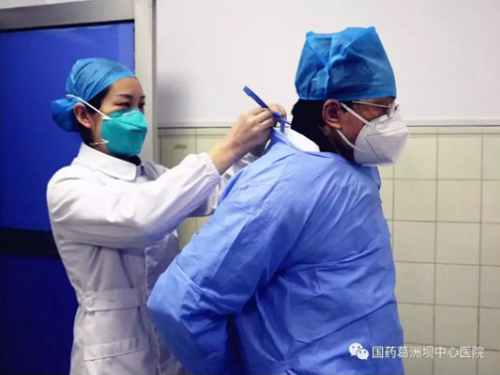 从接到疫情防治的指令后,国药葛医人连续奋战在临床一线,为了节省有限的防护用品,忍着疲劳舍不得脱下身上的防护服,哪怕里面已被汗水湿透……