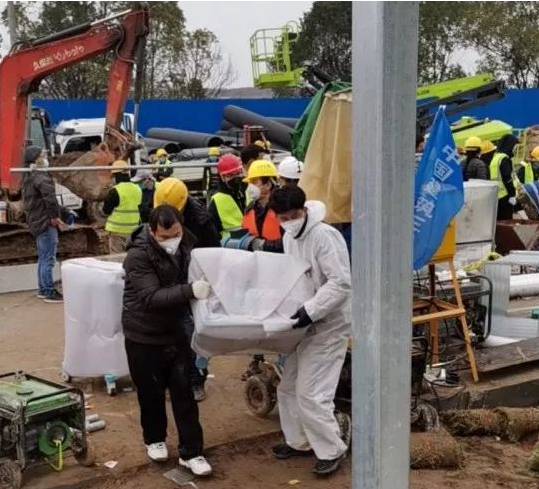 人民网北京2月3日电 2月1日-2日,国药卫勤服务保障(武汉)有限公司(以下简称“国药卫勤”)向武汉火神山医院供应的首批医疗物资运抵工地,并分批转运、安放到新建病房里。这批医疗物资总价值约六百多万元,其中包括一台“救治新冠肺炎神器”的ECMO体外膜肺氧合器。