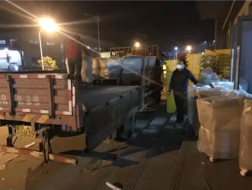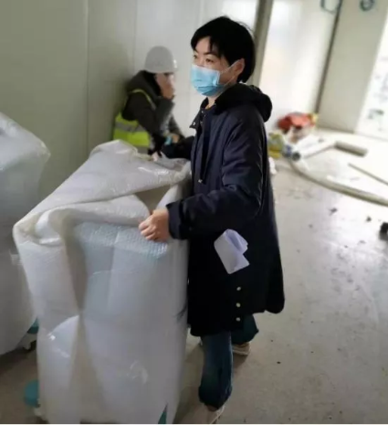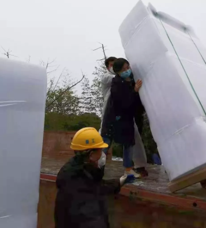 国药卫勤公司质量部负责人叶丽娟得知医院急需工作人员后,放弃休假,主动请缨从安徽老家开车返回武汉抗疫一线,并在医院现场组织九人的工作团队。他们中有有青年志愿者,有货车司机,有装修工人,甚至连环卫工人都参与到装卸和搬运的工作中。他们不辞辛苦,不计报酬,在库房和医院间连续往返工作24个小时,彻夜装卸搬运货物五百余件。任务紧急,人力不足,工地现场没有叉车等运输工具,甚至连道路都尚未铺好。在这种环境下,大家硬是肩挑手扛,用人力一步步把上百斤的医疗物资扛到病房。