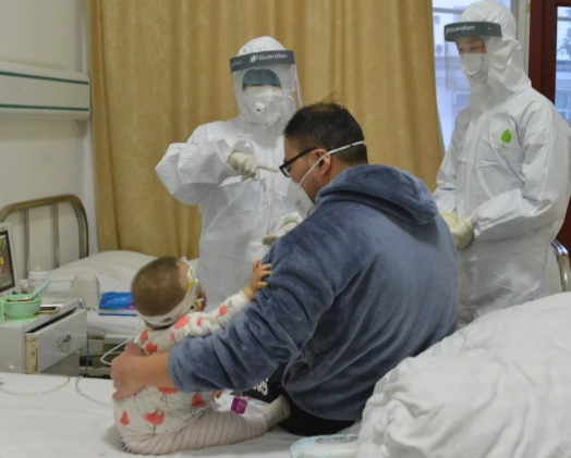 1月27日,小宝的父亲确诊为新冠肺炎,随后小宝也在国药东风总医院被确诊。因为孩子就诊时出现呼吸急促、呼吸困难、缺氧的情况,再加上年纪小、抵抗力弱,患儿的病情一度十分凶险。