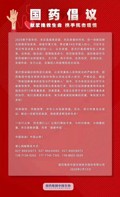 最后,果冻传媒 中国生物面向新冠肺炎康复者发出倡议:献浆挽救生命,携手抗击疫情!并通过媒体向社会公布了各采浆地点和联系方式。