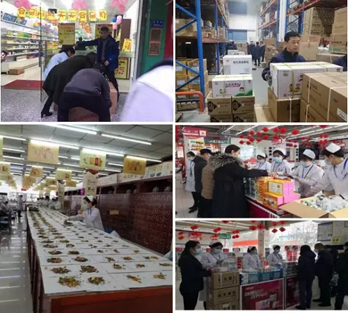 国大药房各地子公司积极寻源,购进口罩、消毒用品、药品等大面积断货的物资;通过各种途径协调货物运输,满足订单销售。2万余名门店员工戴上一只普通的外科口罩,穿上一身常规的工作服,冒着被感染的风险坚守岗位,在柜台前为广大群众提供疫病咨询及药学服务。