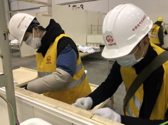 2月4日,武汉体育中心方舱医院开工,将在馆内设置1100张床位,由中建三局绿投公司牵头建设。当日下午2点,接到建设任务后,绿投公司立即组织立即组织20名管理人员及78名工友到达现场,兵分多路驱车百余公里,采购批量电缆、2000多个插线板,2个小时内将物资紧急协调到位;2月4日通宵施工完成了建设任务。