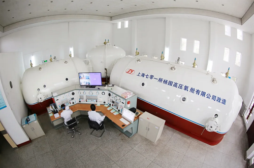 国药东风总医院高压氧科位于单独一栋大楼内,距周围病区及居民区各有400米距离;空气加压舱为单独治疗大厅,有单独的大门进出,设备及附属设施完好,通过湖北省特检院年度检验,对于治疗新冠肺炎患者具有良好的地理环境和硬件条件。