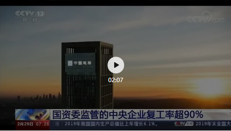 在统筹推进新冠肺炎疫情防控和经济社会发展的关键时期,中央企业分区分级精准复工复产,截至目前,复工复产率超过90%。2月29日,中央电视台新进行了详细报道: