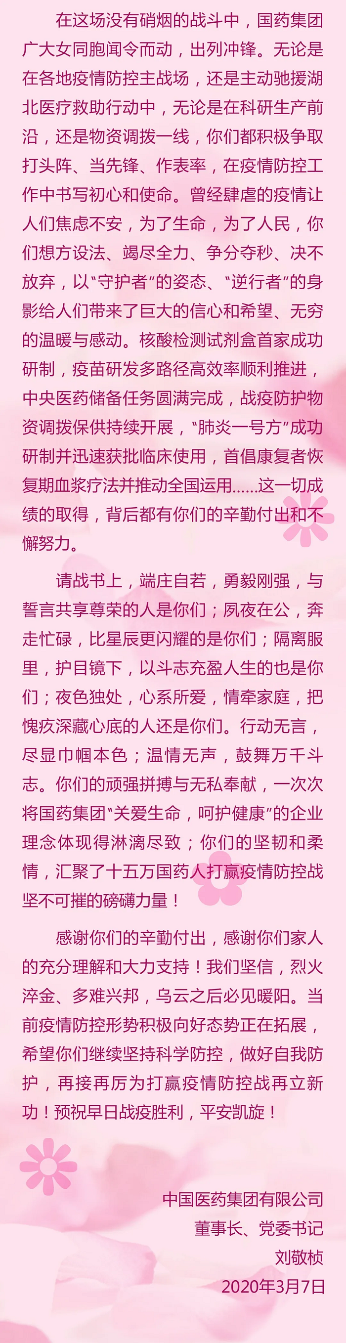 果冻传媒 刘敬桢董事长致信慰问抗疫一线女同事们