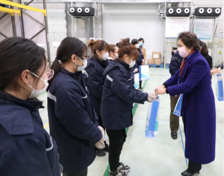 在国药嘉远,她详细了解进出口各条线的女职工们不分昼夜、想方设法紧急筹集海外防护物资的情况,高度赞赏她们高效、出色、卓有成效的工作。