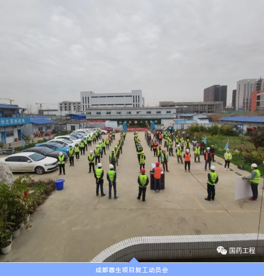 党委、公司党委做好疫情防控和复工复产工作的视频会议精神,确保安全、科学有序的吹响复工集结号,国药工程各项目现场结合各地政策,通过多方努力,在做好疫情防控的前提下按下了复工复产的“播放键”。