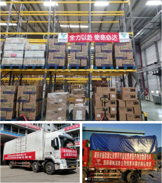 面对疫区防控急需,国药器械在保障央储调拨的同时,组织大批物资捐往一线: