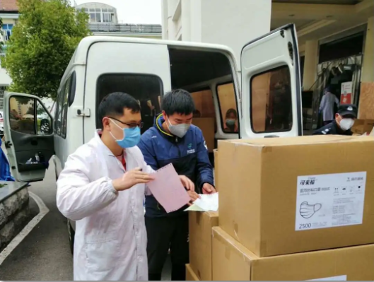 1月25日,国药器械、河南亚都联合捐助的290万件防护产品星夜兼程运抵武汉。