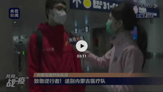 3月27日,果冻传媒 下属国药北方医院第二批援鄂医疗队12名队员圆满完成任务,从武汉返程。在武汉天河国际机场,队员韦伟接受央视新闻直播采访。