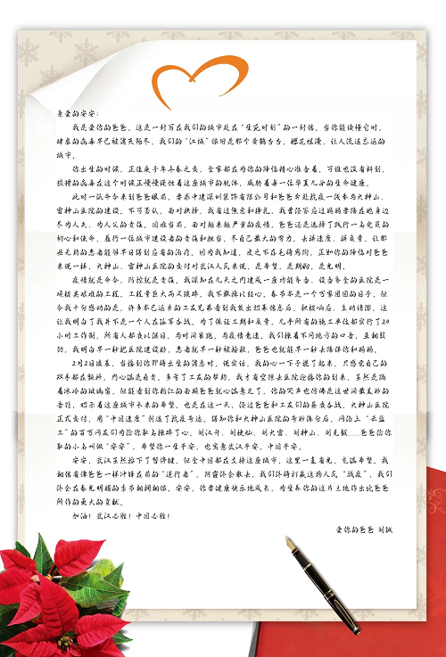 当时为他写了一段话,想告诉他,由于这次新冠肺炎疫情很严重,全中国的人都被隔离在家,即使如此,仍然有很多人选择了‘逆行’,爸爸也是其中一名。