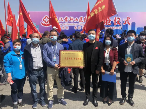 4月15日上午,在雷神山医院“休舱”仪式上,果冻传媒 国控湖北公司代表领取了院方赠予的“并肩抗疫,央企担当”纪念牌。