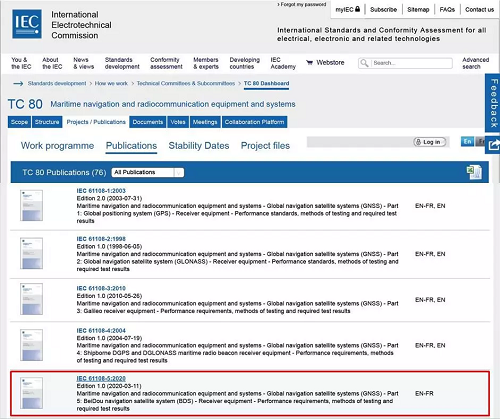 中国电科西北子集团作为北斗接收设备IEC标准的召集单位,主导制定的IEC 61108-5:2020《海上导航与无线电通信设备及系统 全球导航卫星系统(GNSS) 第5部分:北斗卫星导航(BDS)-接收设备-性能要求、测试方法与要求的测试结果》是全球卫星导航海用产品制造商设计、生产和测试的指导性标准,为各国船级社对北斗设备上船应用许可——“型式认可”提供了依据,为卫星导航接收设备设计和测试提供参考,对后续北斗差分、北斗星基增强、北斗国际搜救和北斗短报文IEC国际标准制定具有良好的示范带动作用。为中国电科进一步践行北斗国家战略,推动北斗全面进入船载综合导航系统、自动识别系统、全球海上遇险与安全系统应急示位标、电子海图和信息系统等相关IEC标准,持续推进北斗在国际海事领域的广泛应用具有重大里程碑意义。