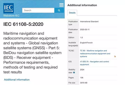 3月11日,国际电工委员会第八十技术委员会(IEC/TC80)正式发布了中国电科主导制定的首个北斗接收设备IEC国际标准,北斗国际标准化工作取得丰硕成果。