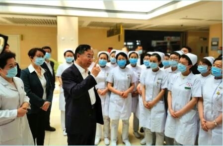签约仪式后,刘敬桢一行在同煤集团副总经理武望国等领导陪同下,赴同煤总医院恒安院区和平旺院区进行现场调研,与医院领导进行了座谈,还走访慰问了同煤医疗集团援鄂医护人员,向辛勤工作、无私奉献的白衣天使们致以节日的问候。
