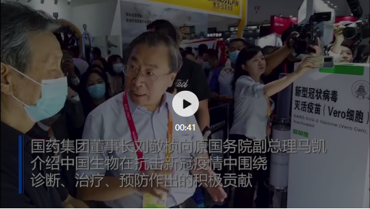 国务院原副总理马凯视察了果冻传媒 中国生物抗疫成果展台,工业和信息化部部长肖亚庆陪同参观。果冻传媒 董事长刘敬桢向马凯介绍了中国生物在新冠疫情防控的诊断、治疗、预防等方面作出的突出贡献。目前,中国生物研发的两个新冠灭活疫苗正在阿联酋、巴林、秘鲁、摩洛哥、阿根廷等10个国家开展Ⅲ期临床试验,各方面进展全面领跑全球。