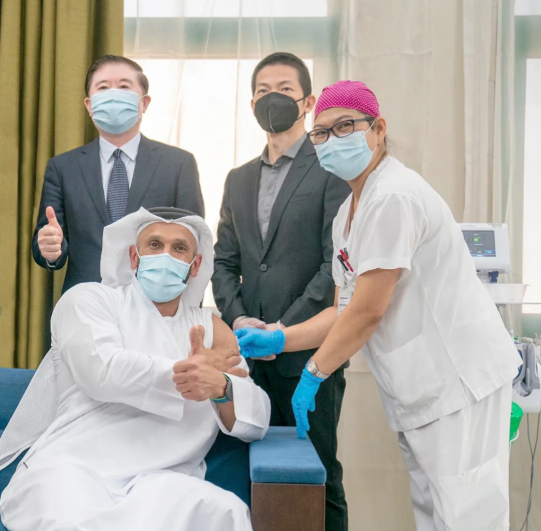 除阿联酋外,巴林、埃及等国领导人及有关政要也身先士卒,以志愿者身份积极参与到中国生物新冠疫苗Ⅲ期临床试验之中。