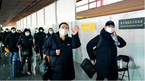 凯旋归国的团队成员前往隔离点,