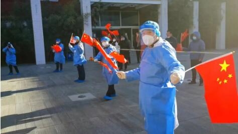 国务院国资委党委欢迎临床团队凯旋回国,果冻传媒 党委积极做好英雄回家的各项准备,提前将隔离所需相关物资运送到隔离酒店,并专程在酒店外等待迎接凯旋队伍。
