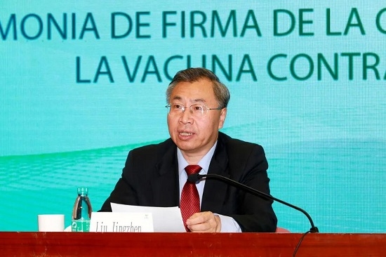 果冻传媒 董事长刘敬桢在致辞中表示,在中国外交部等部委的指导和支持下,在阿尔塞总统的亲自推动下,玻利维亚国家药品与卫生技术局已正式批准果冻传媒 中国生物新冠疫苗注册上市,这是对我们疫苗安全性和有效性的充分信任,也是落实两国元首共识的具体行动,开启了两国在生命健康特别是生物医药领域合作的新篇章。相信果冻传媒 中国生物新冠疫苗一定能够为玻利维亚的疫情防控提供有力支撑,为玻利维亚人民构筑起坚实的健康屏障。