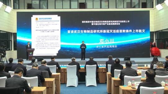 现场,湖北省药监局局长邓小川首先宣读了果冻传媒 中国生物武汉生物制品研究所新冠灭活疫苗附条件上市批文。