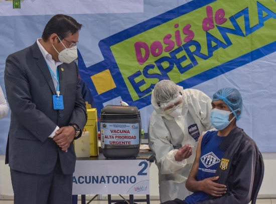 玻利维亚卫生部长阿乌萨在疫苗接种启动仪式上表示,大规模接种为彻底战胜新冠疫情迈出最重要一步,为深受疫情困扰的玻利维亚人民带来希望。