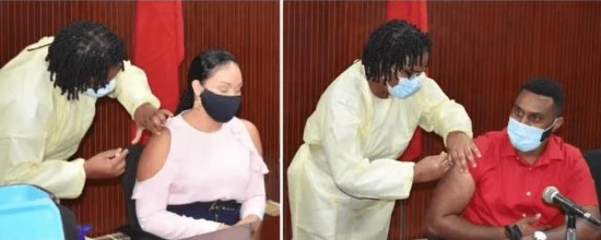 多米尼克政要现场接种疫苗(图片由驻多米尼克使馆提供)