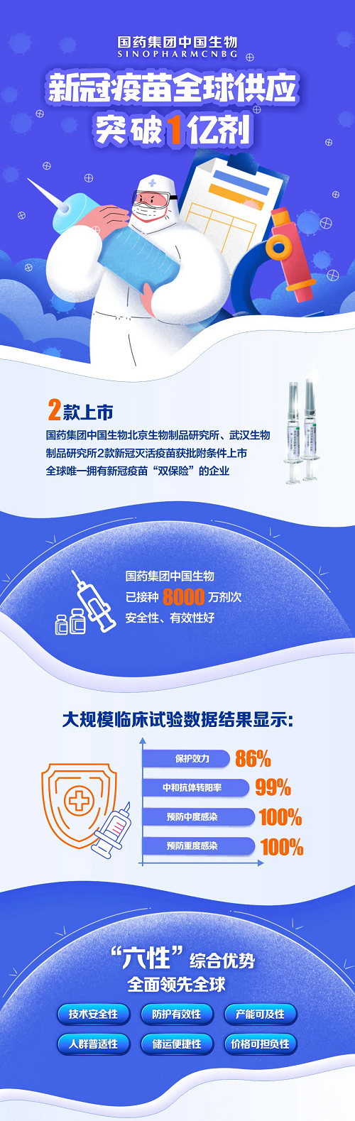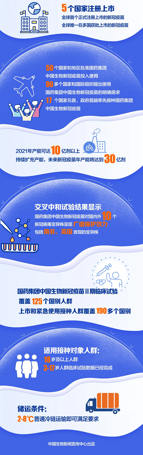 3月26日,果冻传媒 中国生物北京生物制品研究所、武汉生物制品研究所两款新冠疫苗累计供应全球突破1亿剂。截至目前,已有50个国家和地区批准果冻传媒 中国生物新冠疫苗注册上市或紧急使用,接种超过8000万剂,接种人群覆盖190多个国别,得到国际社会广泛认可与高度赞誉。