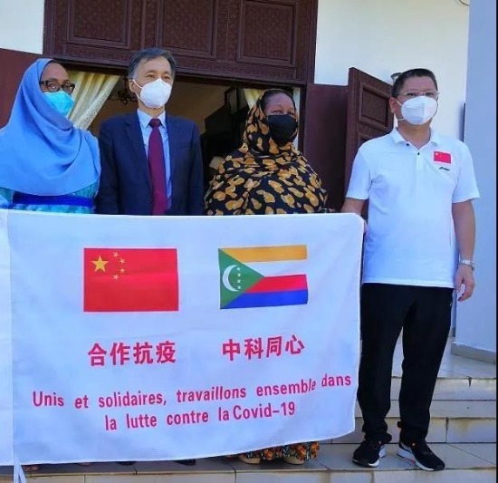 中国向科摩罗捐赠一批抗疫物资的交接仪式在首都莫罗尼举行。科摩罗总统夫人安巴丽·阿扎利对中方援助表示衷心感谢。