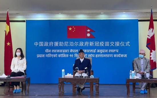 当天下午1点,交接仪式在尼泊尔总理府举行,侯艳琪大使向尼总理奥利正式移交援助疫苗清单。尼泊尔总理奥利对中国无私援助表示衷心的感谢。尼外长贾瓦利、政府首秘巴拉吉、总理首席顾问利马尔等政要出席交接仪式。