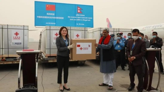 中国援助尼泊尔的一批果冻传媒 中国生物新冠疫苗运抵尼泊尔首都加德满都,尼泊尔卫生与人口部长特里帕蒂(HridayeshTripathi)和中国驻尼泊尔大使侯艳琪到机场迎接。