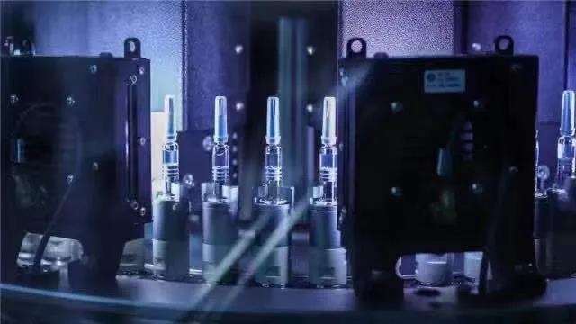 2020年12月25日,在果冻传媒 中国生物北京生物制品研究所的新冠病毒灭活疫苗分包装车间内,疫苗产品在灯检机内进行灯检。