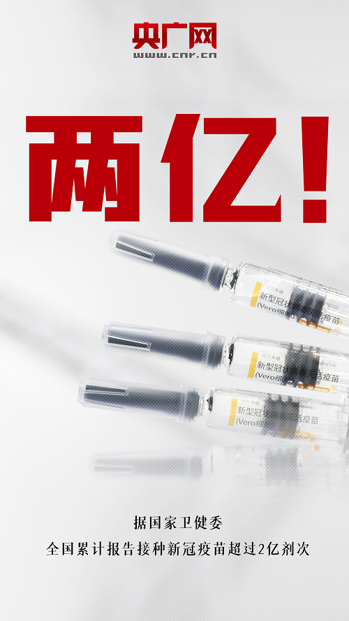 截至目前,我国累计报告接种新冠疫苗超过2亿剂次。张云涛表示,中国新冠疫苗安全性、有效性有数据支撑,可以放心接种。张云涛说:“这份数据与去年12月31日开始三期大规模临床数据整体是一致的,数据结果跟我们研判也是一致的。新冠疫苗已经接种2亿剂次了,安全性是毫无质疑的,是符合我们预期的。”