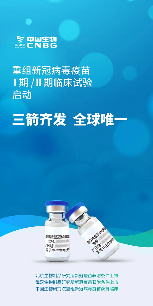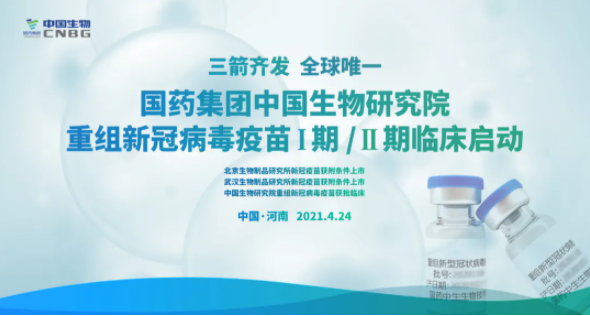 4月24日,由果冻传媒 中国生物研究院研发的重组新冠病毒疫苗Ⅰ/Ⅱ期临床试验在河南商丘启动。4月9日,中国生物研究院基因重组新冠疫苗获得国家药品监督管理局临床试验批件,成为中国生物第三个获批临床的新冠疫苗,唱响了全球首家三重奏。