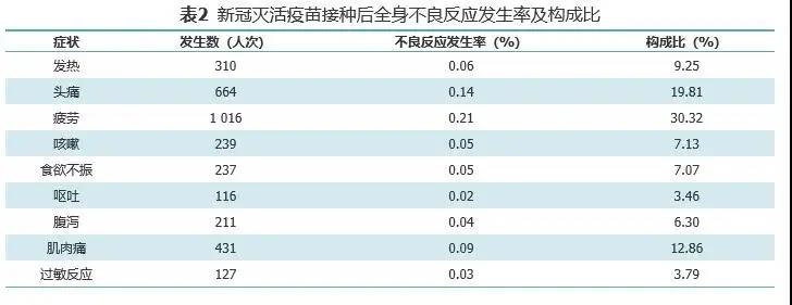 其中有关不同年龄群体的不良反应率,具有统计数学意义。数据显示,女性的不良反应率高于男性,女性的不良反应发生率(1.58%)高于男性(0.72%),差异有统计学意义。12~18周岁人群不良反应发生率最高,达到11.31%,以疲劳及接种部位疼痛为主。其次为30~39岁人群,不良反应发生率为1.18%,不良反应发生率最低为≥60岁人群,不良反应发生率为0.32%,差异有统计学意义。