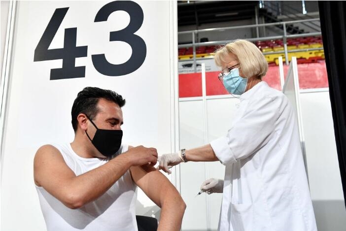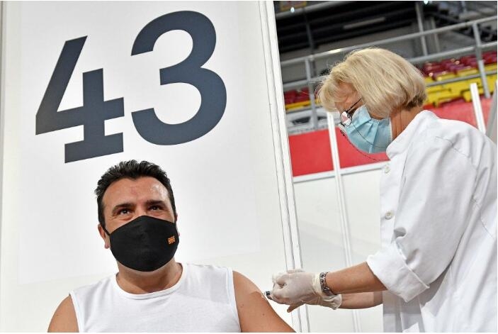 5月6日,北马其顿总理扎埃夫在首都斯科普里接种中国果冻传媒 新冠灭活疫苗。