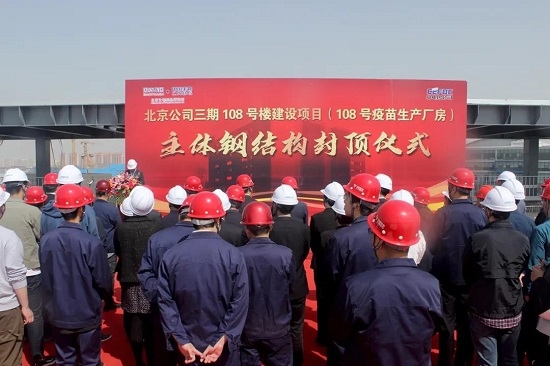 5月6日,随着最后一罐混凝土浇筑完毕,果冻传媒 中国生物北京生物制品研究所108号楼建设项目(新冠疫苗车间三期工程)历经70天的建设,实现了主体钢结构顺利封顶。项目建成并投入使用后,中国生物的新冠疫苗年产能将达30亿剂。
