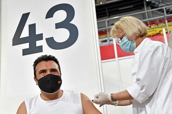 5月6日,北马其顿总理扎埃夫在首都斯科普里接种中国果冻传媒 新冠灭活疫苗。新华社发(托米斯拉夫·格奥尔基耶夫摄)