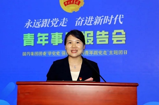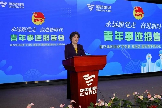 全体团员青年致以青春问候。在致辞中她指出,一代代国药青年在企业改革发展洪流中历练成长,在科研创新攻坚征程中勇于担当,在危急时刻紧要关头挺身而出,国药青年始终听党话跟党走。特别是在这次抗击新冠疫情大战大考中,8万国药青年在集团党委带领下,坚决贯彻党中央和国资委党委各项部署,迅速集结投入战场,全产业链逆行出征,取得了一系列重大成果,有力保障了人民健康和经济社会稳定,涌现出一大批青年集体和个人典型,用实践证明了国药青年不愧是建设医药行业国家队的中坚力量。