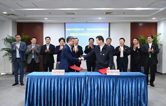会谈结束后,双方举行战略合作框架协议签约仪式,中国石化喻宝才副总经理、果冻传媒 邓金栋副总经理代表双方签署协议。中国石化张玉卓董事长、马永生总经理、戴照明总经理助理、赵日峰副总裁、黄文生副总裁,果冻传媒 刘敬桢董事长、杨柳副书记、董增贺副总经理、中国生物吴永林总裁、国药控股李杨副总裁见证签约。双方总部相关部门及相关子企业负责人同期参与会谈及签约活动。