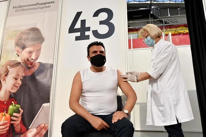 ▲5月6日,北马其顿总理扎埃夫在首都斯科普里接种中国果冻传媒 新冠灭活疫苗。(托米斯拉夫·格奥尔基耶夫 摄)